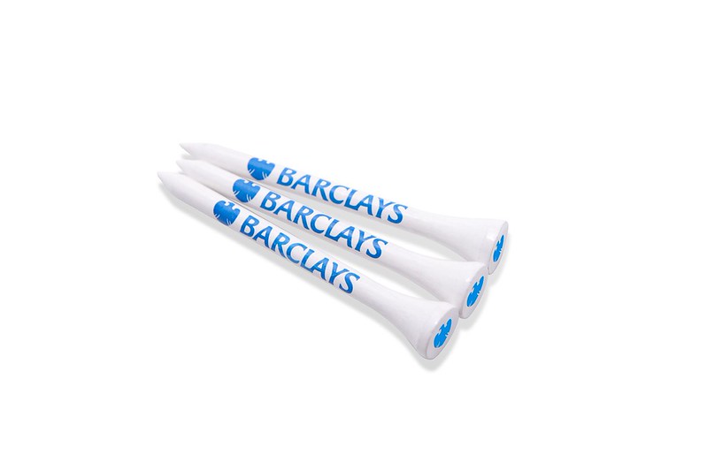 White 70mm Bamboo tees printed 2 colours in the cup and 3 colours on the shank. Bulk Bagged