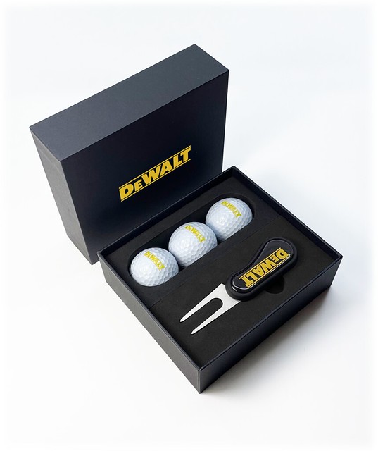 Flix DS Mini Black Presentation Box with full colour print to the middle of the lid packed with 3 x Wilson Ultra golf balls printed up to full colour on 1 pole and 1 x Flix DS repair tool with 25mm black nickel removable resin dome ball marker and resin dome to the rear of the handle, both printed up to full colour. Golf balls and the tool are sat in an EVA insert in the box. Must be ordered in 4's. Selected ball upgrades are available for additional costs
