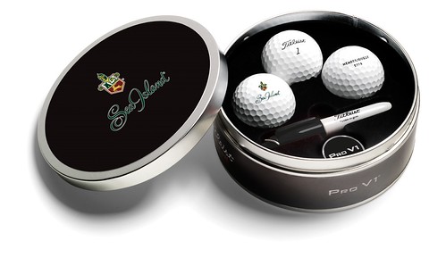 Titleist Pro V1 Tin, in brushed aluminium and black finish. Includes your logo printed on 3 x Titleist Pro V1 White golf balls on 1 pole up to full colour and on the top of the lid. Tin also includes 1 x mini Sharpie pen (Titleist logo) and 1 x metal ball marker (Pro V1 logo), with all items sat in an insert in the tin. Up to 2 further poles can be printed for additional costs. Balls can be changed to Pro V1x if preferred for no extra cost. Must be ordered in multiples of 4. MOQ 96 tins. Non-stock product, so stock subject to availability