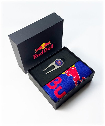 Towel Revo Mini Black Presentation Box with full colour print to the middle of the lid packed with 1 x Dormi Players (TT7002 open towel) or Dormi Tri Fold towel (TT7003) printed up to full colour on 1 side and 1 x Revo repair tool with 25mm black nickel removable up to full colour resin dome ball marker. The tool is sat in an EVA insert in the box. Towel upgrade to either a waffle embroidered towel or a rear background print on the Dormi towel available for additional costs