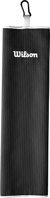 Wilson Tri-Fold Golf Towel with Carabiner hook, made with waffle-like weave pattern in microfibre material. 100% polyester. Size 40.64cm x 53.34cm. Wilson logo at the top and your logo embroidered to 1 position at a maximum diameter of 90mm and a maximum 15 thread colours. MOQ 18. If extra embroidery position is required, please ask for additional costs. Plain stock is available, please ask for a price. Non-stock product, so stock subject to availability